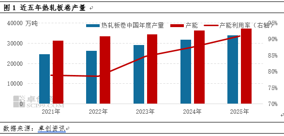 2025年粗钢产量与钢材产量趋势相悖,其主要原因在于钢厂产品结构的调整,深加工领域产量逐步增加,而热轧板卷作为典型的长流程冶炼钢材产品,其产能扩充较快,且纵向产业链产品丰富,成为带动2025年钢材产量增加的主力军。