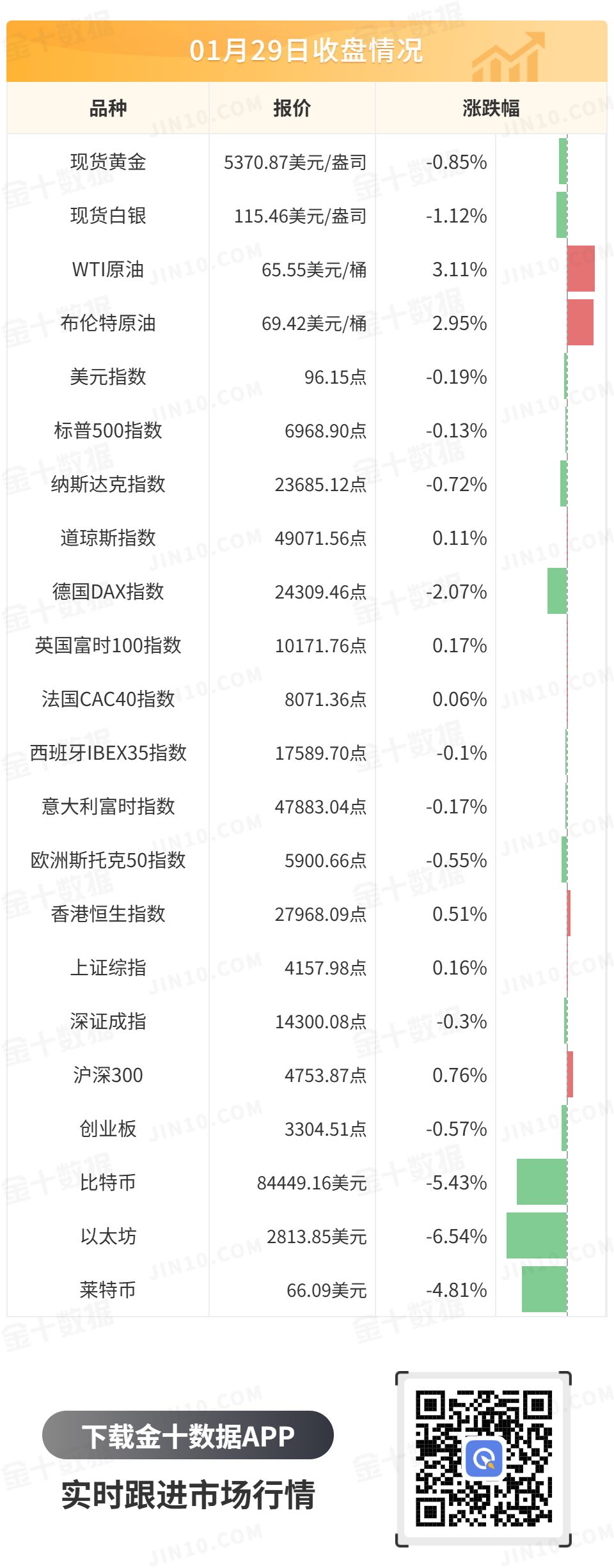 现货黄金日内振幅近500美元。其在亚盘再度逼近5600美元,但仍未能站上此处,并在美盘急转直下,较高位一度大跌400美元,但随后又上演V字行情,收复超200美元失地,最终收跌0.85%,报5370.87美元/盎司;现货白银也随黄金剧烈波动,盘中一度跌超10美元,最终收跌1.12%,报115.46美元/盎司。