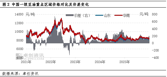 2025年国内豆油南北价差大,出现“北油南调”现象