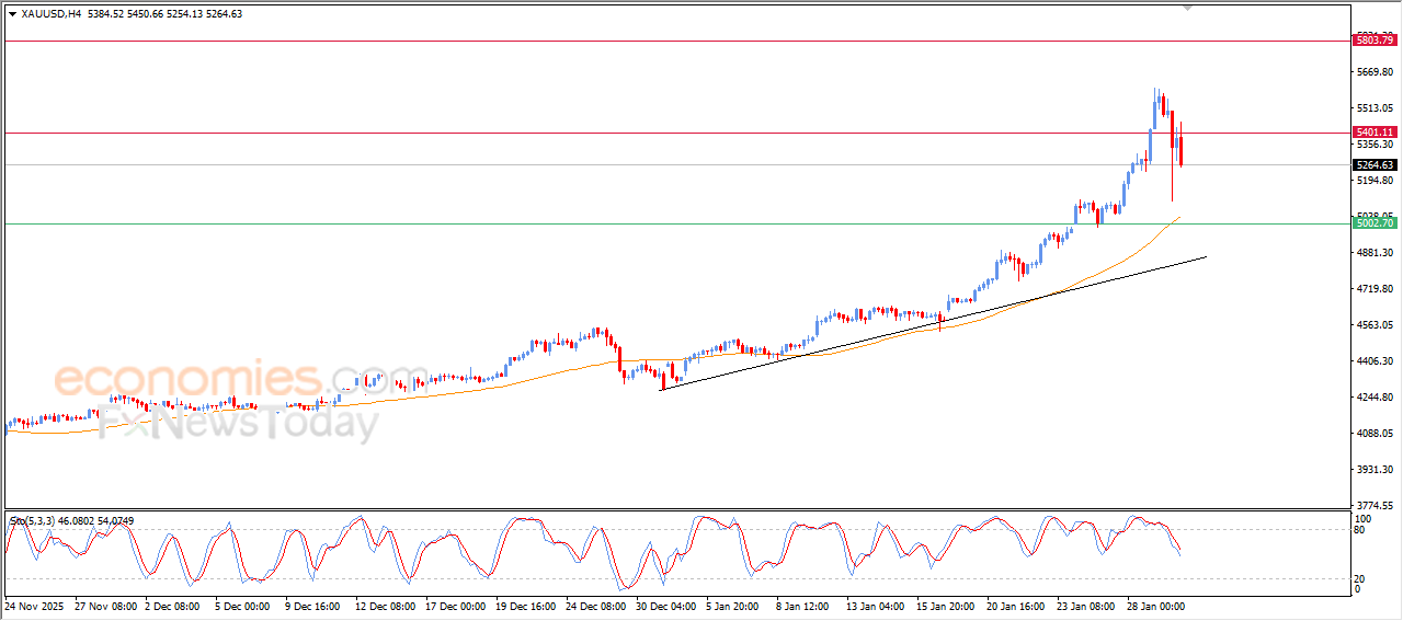 Economies.com的分析师今日最新观点:受相对强弱指标(RSI)发出看跌(负面)信号的影响,现货黄金价格在触及超买位后出现日内回落。与此同时,现货黄金价格正试图寻找更高的低点,以此作为重新获得多头动能并重启上涨趋势的基础。尽管当前表现不振,但由于行情处于50日均线(EMA50)上方,金价获得了强力的动态支撑。这强化了短期内主要牛市趋势的稳固性与主导性,使得未来短期内收复失地并延续反弹的可能性依然较大。