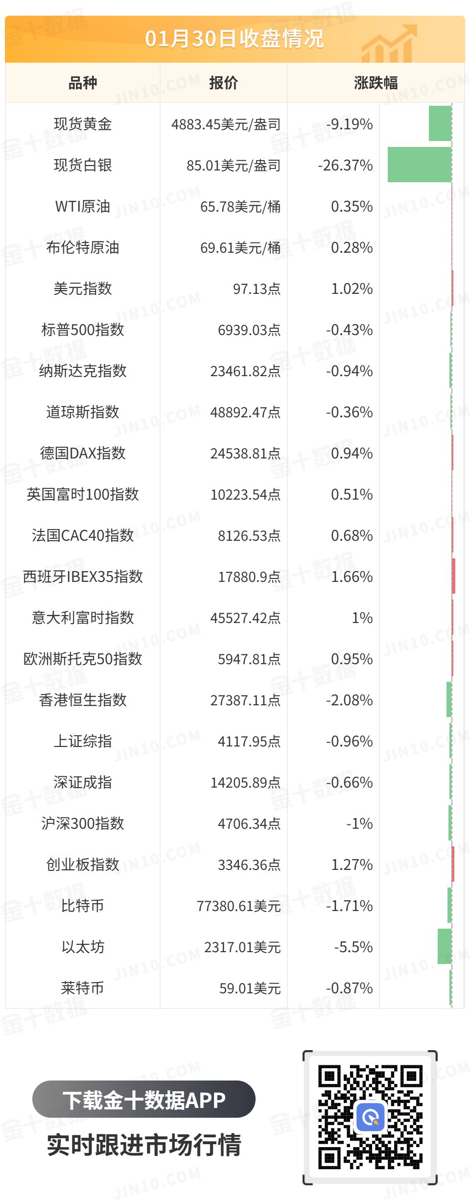 1、特朗普宣布提名凯文·沃什出任美联储主席,并称要求沃什降息不合适,降息无需白宫施压,沃什有望获民主党人支持,并预期其将推动降息;白宫经济委员会主任哈塞特:白宫有信心沃什提名会迅速获得确认。货币市场押注美联储今年将累计降息超过两次、每次25个基点。