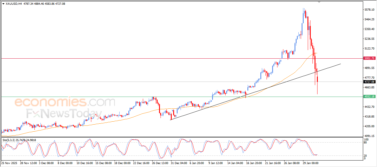 现货黄金价格在最近的盘中交易中继续大幅下跌,突破了短期上升趋势线,负面技术信号加剧了抛售压力,同时其交易价格跌破EMA0,EMA0转变为动态阻力位,降低了近期快速反弹的可能性。尽管存在这些负面压力,但我们注意到,在达到超卖水平后,相对强弱指标出现了积极的重叠信号,这反映在日内波动中,为暂时反弹铺平了道路,或者至少减轻了接下来交易中的损失程度。