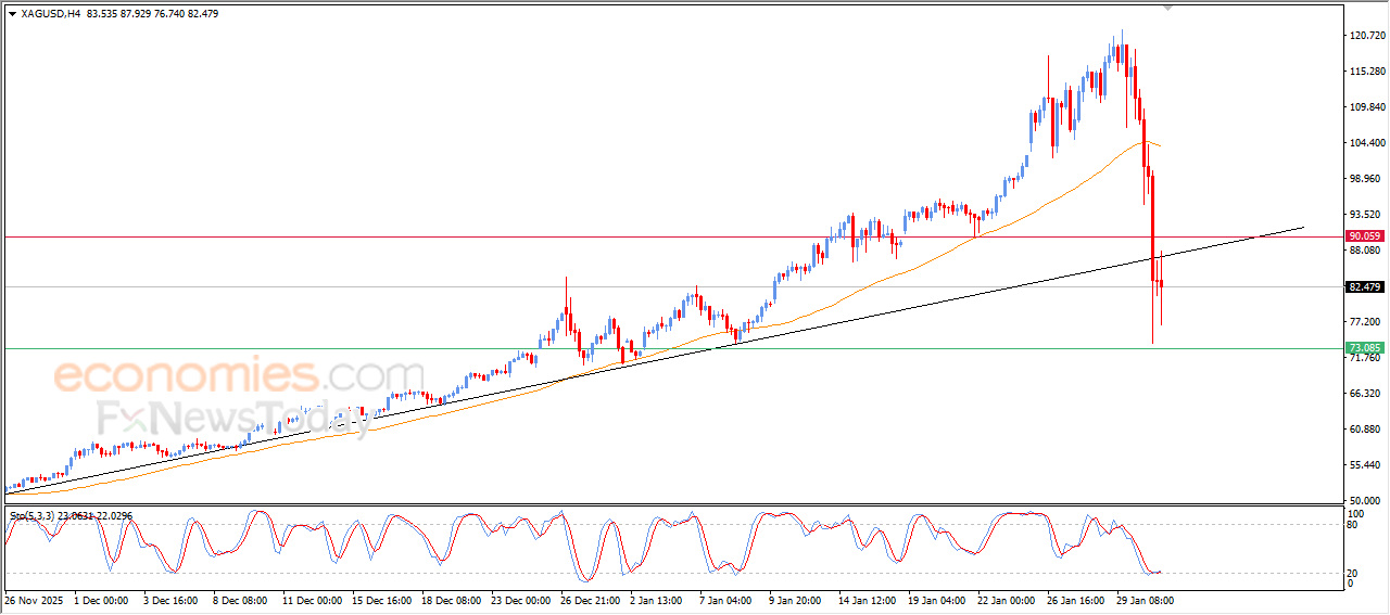 现货白银价格在近期的盘中交易中下跌,此前其交易价格低于EMA50,确认突破短期上涨趋势线,这加剧了下行压力,削弱了快速反弹的可能性。另一方面,我们注意到,在达到超卖水平后,相对强弱指标出现了积极的重叠信号,这有助于价格稳定并进入波动行情,试图摆脱一些超卖状况,为潜在的亏损减缓或有限的日内反弹铺平道路。