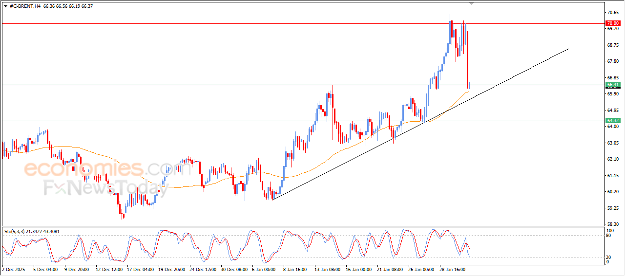 在最近的日内交易中,WTI原油期货价格下跌,跌破63.50美元的关键支撑位,该支撑位代表了短期内形成的负面技术形态(即双顶形态)的颈线。此次下跌伴随着相对强弱指标发出负面信号,此前相对强弱指标已脱离超卖状态,为此次下跌铺平了道路。另一方面,价格仍然受益于其在EMA50上方交易所代表的动态支撑,这加强了主要上涨趋势的稳定性和主导地位,尤其是在短期内沿着次要趋势线交易的情况下,这使得未来一段时间内复苏和上涨反弹的可能性依然存在。
