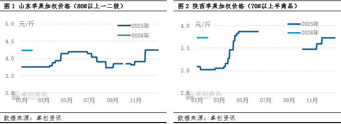 长期来看苹果好货与差货价格逐渐分化,好货维持高位甚至在供应偏紧的情况下有走高趋势,而中等质量果农货价格有走低可能。短期来看,春节之前处于消费旺季,市场需求对价格形成支撑,主流行情以平稳为主。预计山东80#以上一二级货源加权价格维持在4.24元/斤,陕西70#以上半商品货源加权价格维持在3.73元/斤。