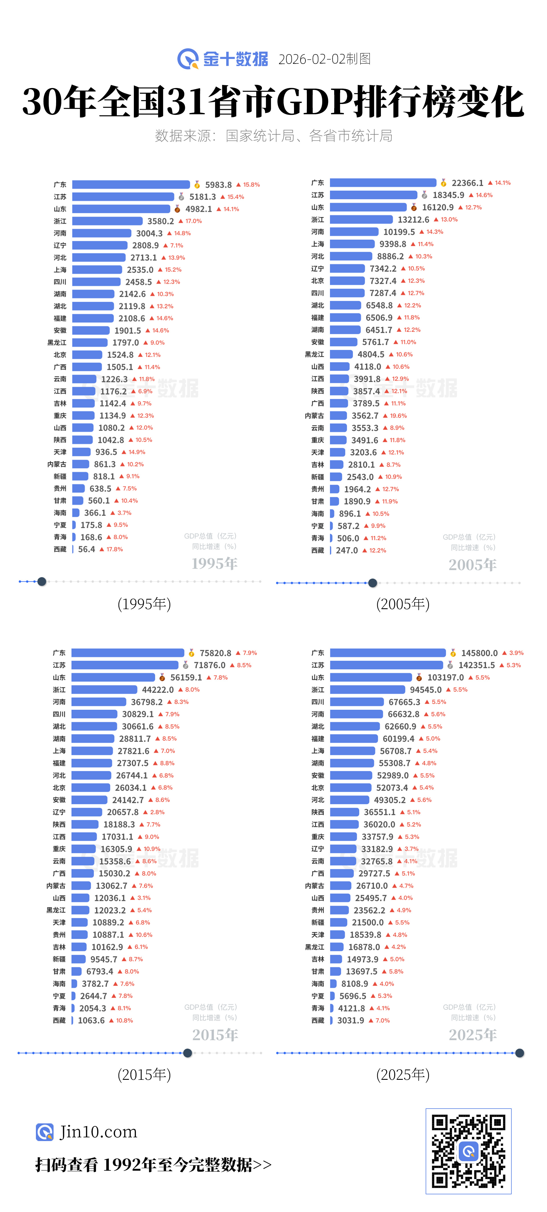 2小时前 30年全国31省市GDP排行榜变化|财料