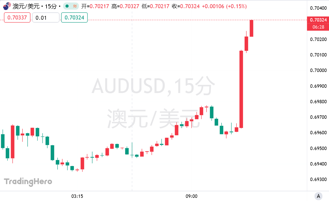 决议公布后,澳大利亚三年期国债收益率跃升5个基点至4.34%,而澳元兑美元短线急速拉升。