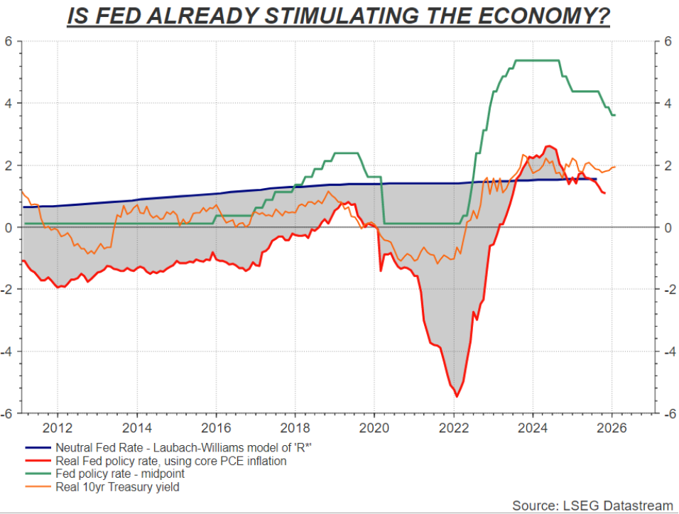 尽管美国政界施压要求进一步大幅降息,且凯文・沃什(Kevin Warsh)已被提名从5月起担任美联储主席,但美联储面临的现实是:核心通胀率仍比目标高出整整一个百分点,金融环境处于2021年以来最宽松的状态。
