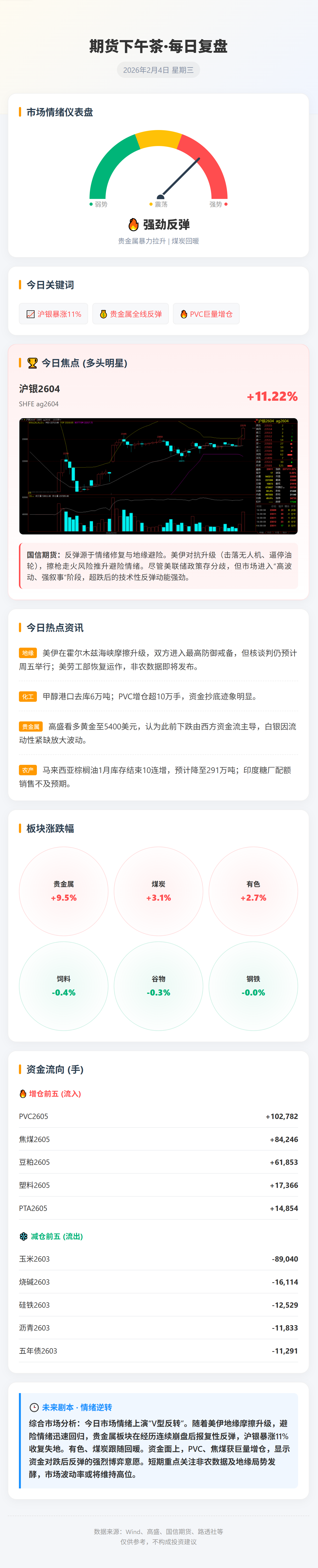 新湖期货表示,贵金属投资的中长期逻辑未变,央行购金的持续性、全球货币泛滥以及去美元化趋势将继续支撑价格中枢上行,且认为金银的回调或已完成。不过,鉴于当前波动率难以下降,多空分歧依然存在,各机构普遍建议保持理性。