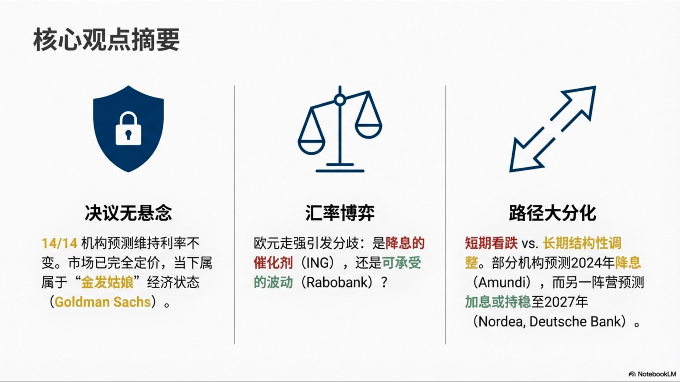 13. 德意志银行:料全年维持利率不变,到2027年中期加息。由于通胀可能低于目标以及欧元升值,今年存在进一步降息的风险,但只有宏观经济出现重大转变才会行动。
