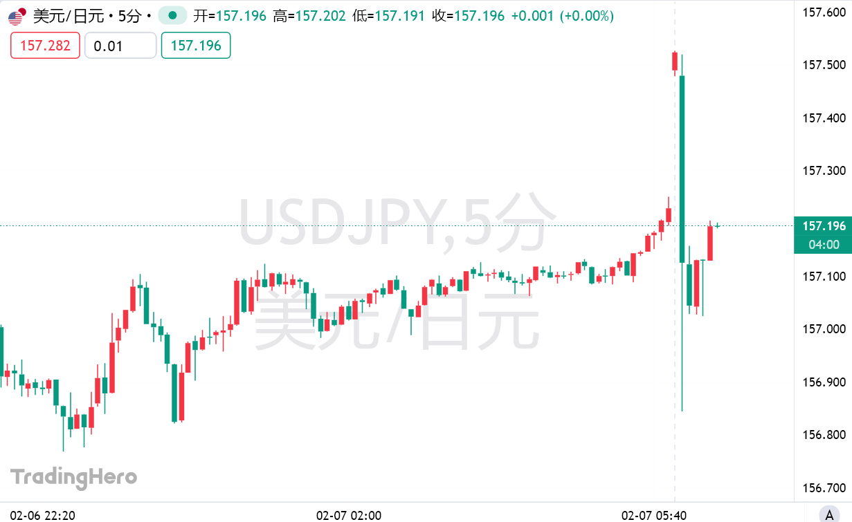 周一亚市早盘中,美元兑日元短线走低50点,跌破157,截至发稿反弹至157上方,日内跌0.02%。