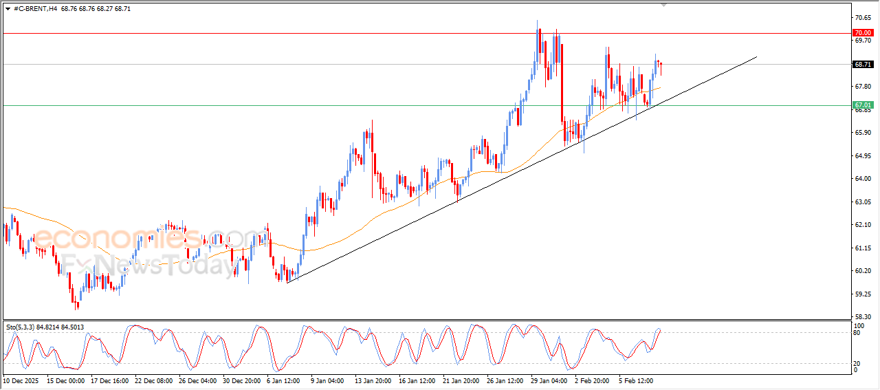 布伦特原油期货价格在最新的日内交易中保持涨势,短期内主要多头趋势占据主导地位,价格沿着该趋势的支撑线运行。受益于价格位于EMA50均线之上所带来的积极压力,这进一步增强了其日内涨幅延续的可能性。尽管相对强弱指标已接近超买水平,但相关技术指标仍然释放出积极信号,强化了布伦特原油期货价格继续上行的预期。