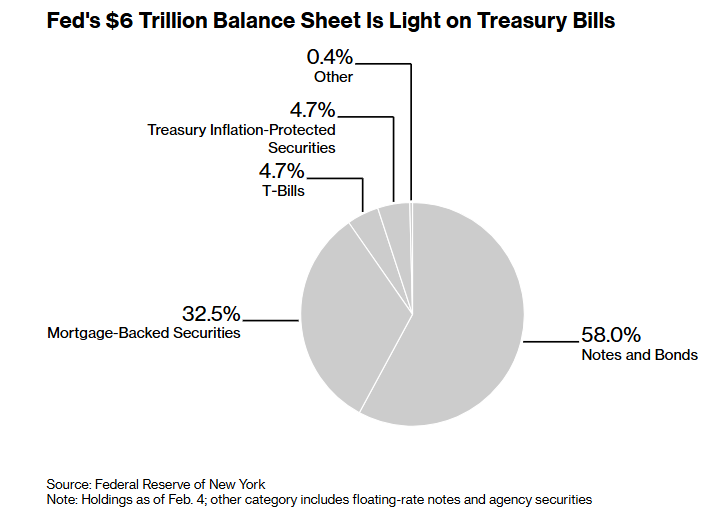 去年12月的FOMC会议纪要显示,与会者倾向于购买国库券,以便美联储的资产组合构成开始转向与未偿国债类似的结构。