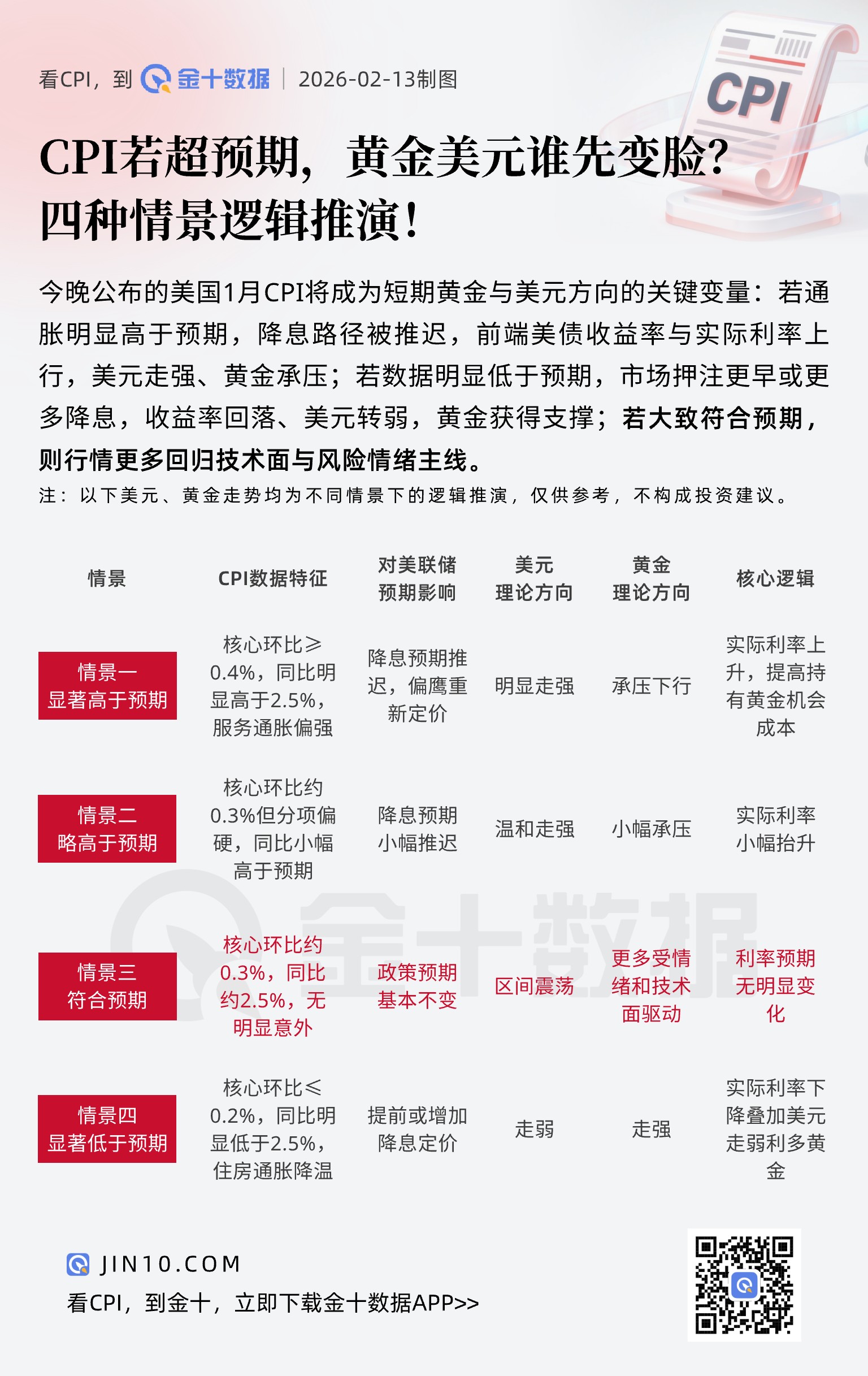 9小时前 CPI之夜,黄金美元谁先变脸?四种情景逻辑推演!