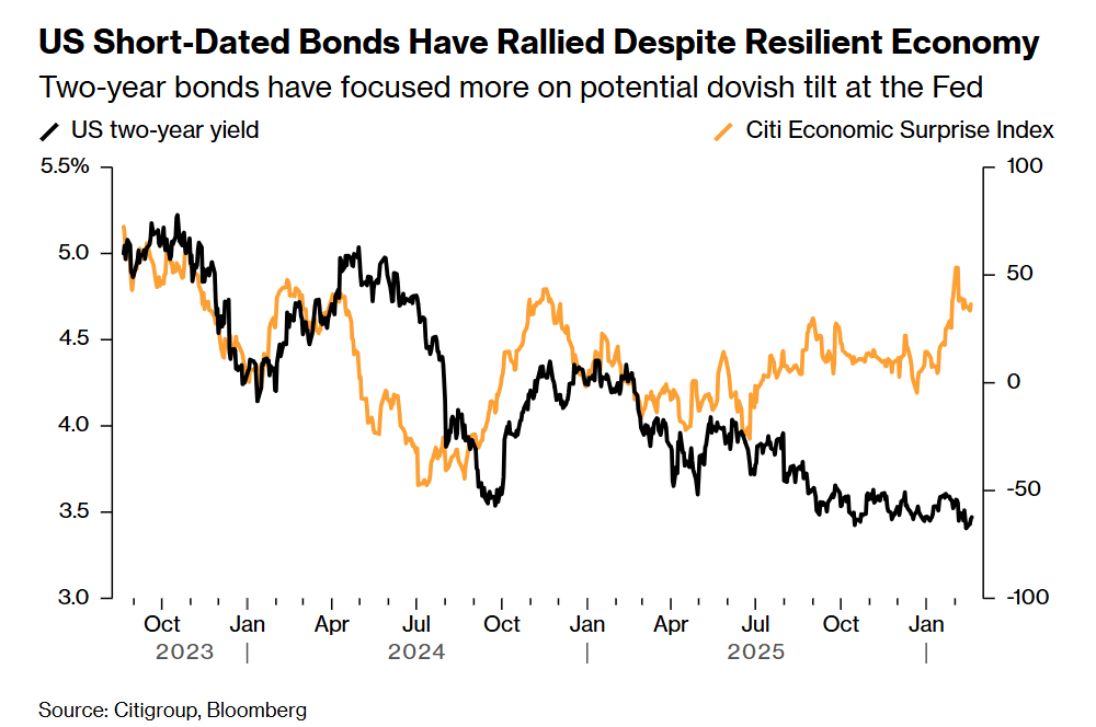本周公布的经济数据,包括每周初请失业金人数,进一步显示了经济的韧性。花旗集团(Citigroup Inc.)的一项指数显示,美国数据持续超出分析师预期。