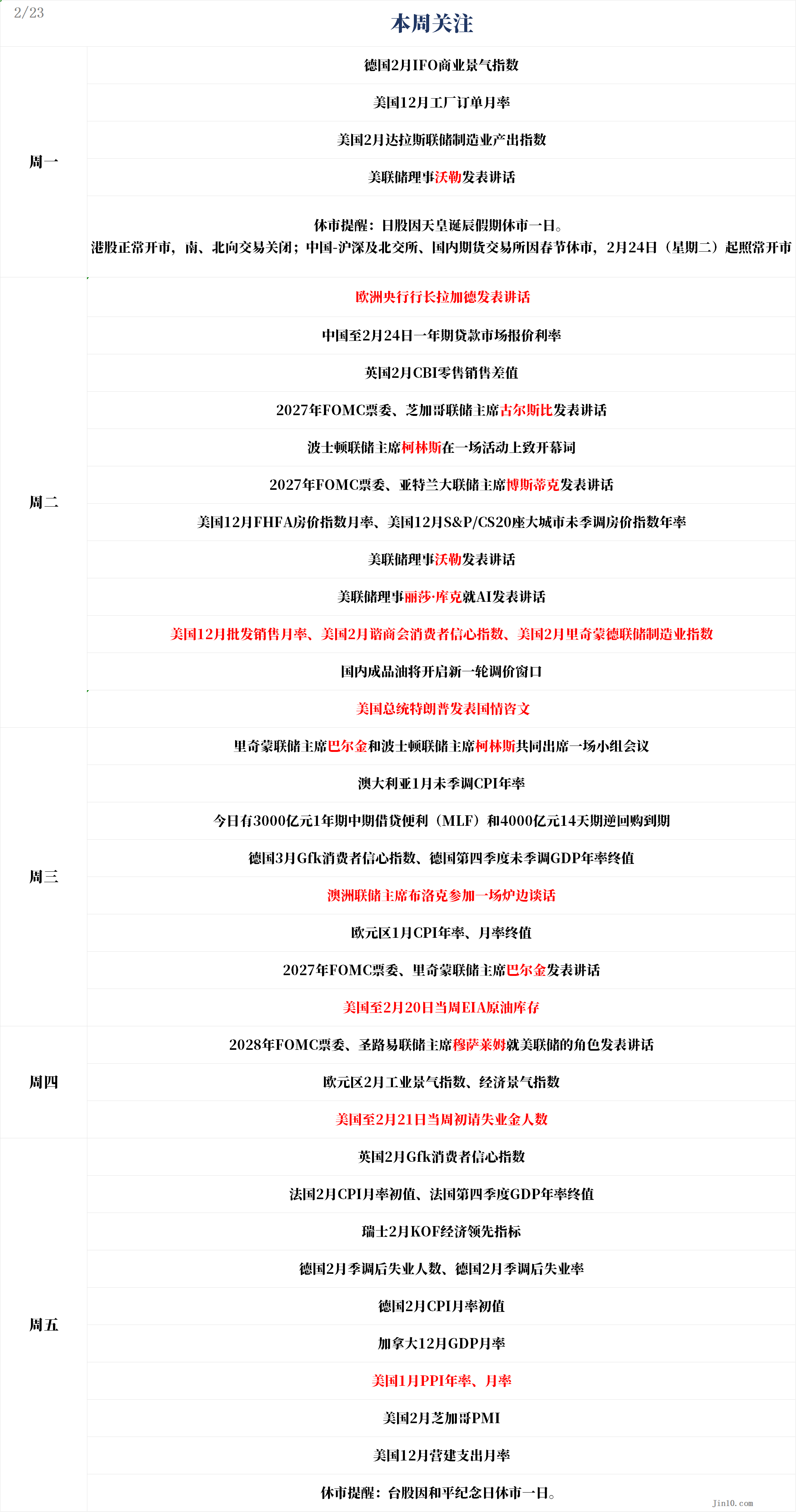 以下是新的一周里市场将重点关注的要点(均为北京时间):