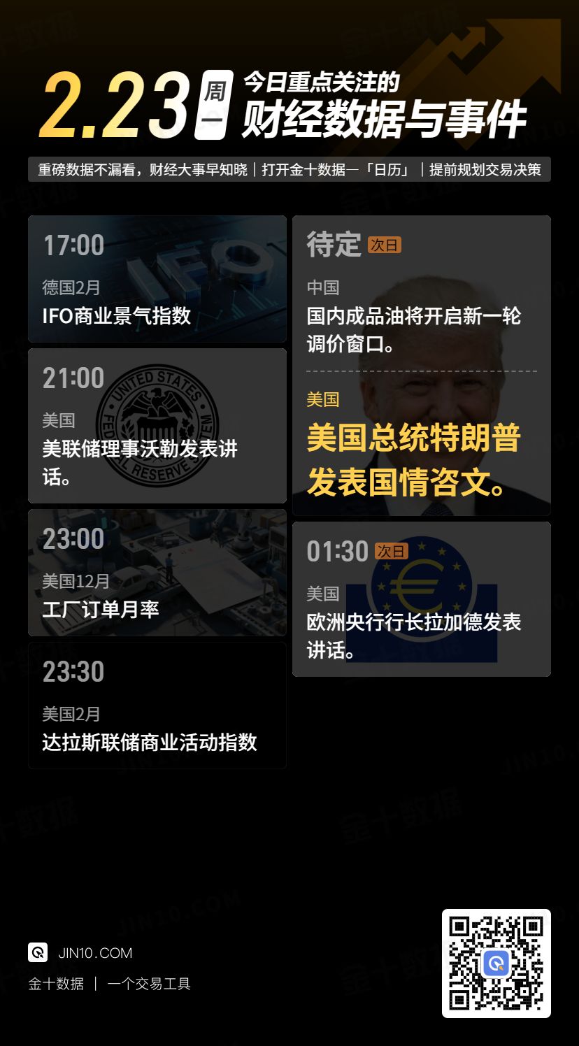 ☆17:00,德国将公布2月IFO商业景气指数,市场预期值为88.4,前值为87.6;