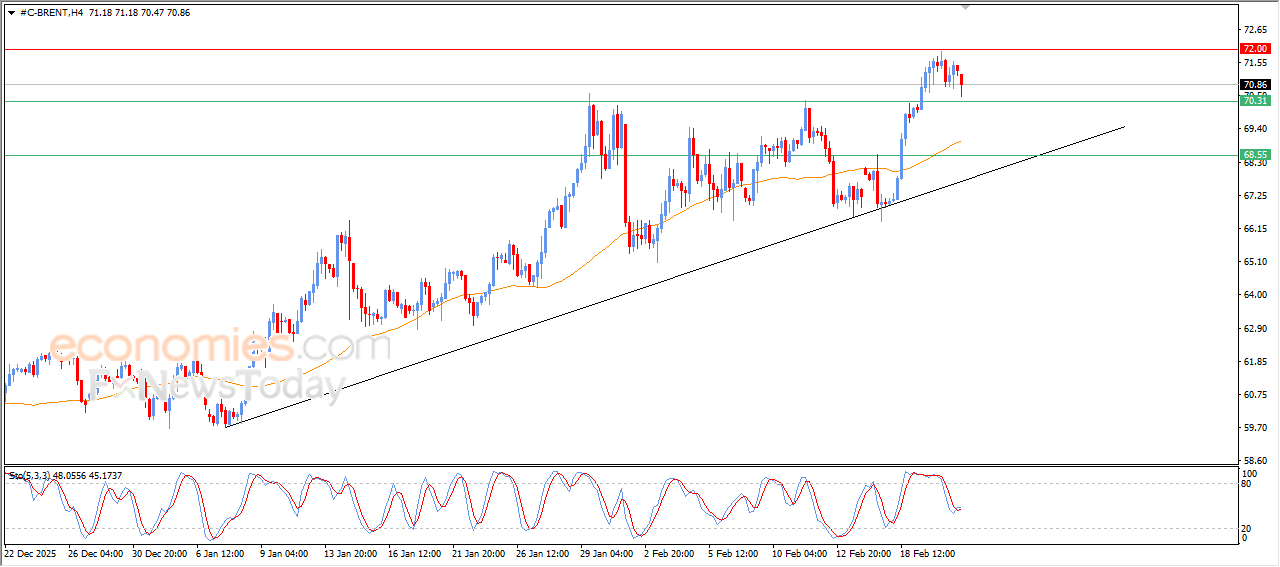 Economies.com的分析师今日最新观点:布伦特原油期货价格回落,试图寻找一个更高的回调低点,以此作为基础,助力其获得所需的多头动能,从而实现反弹并再次上涨。在短期内,主要多头趋势依然占据主导地位,且价格持续运行在EMA50均线之上,进一步增强了其短期内反弹的可能性。与此同时,相对强弱指标在消化超买状态后,已出现积极的重叠信号,这为布伦特原油期货实现新的涨幅提供了有力支撑。