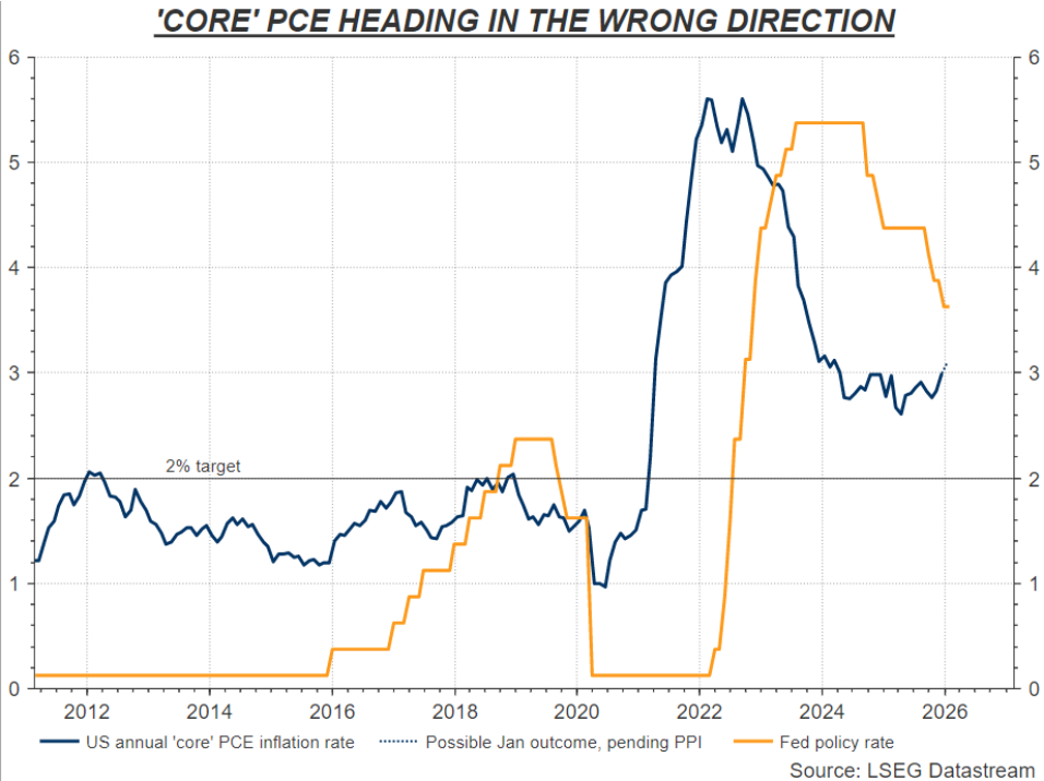 尽管1月消费者物价指数(CPI)整体读数疲软一度引发债市短暂狂欢,但美联储真正盯住的通胀指标——剔除食品与能源的核心个人消费支出(PCE)通胀——却正朝着错误方向发展。