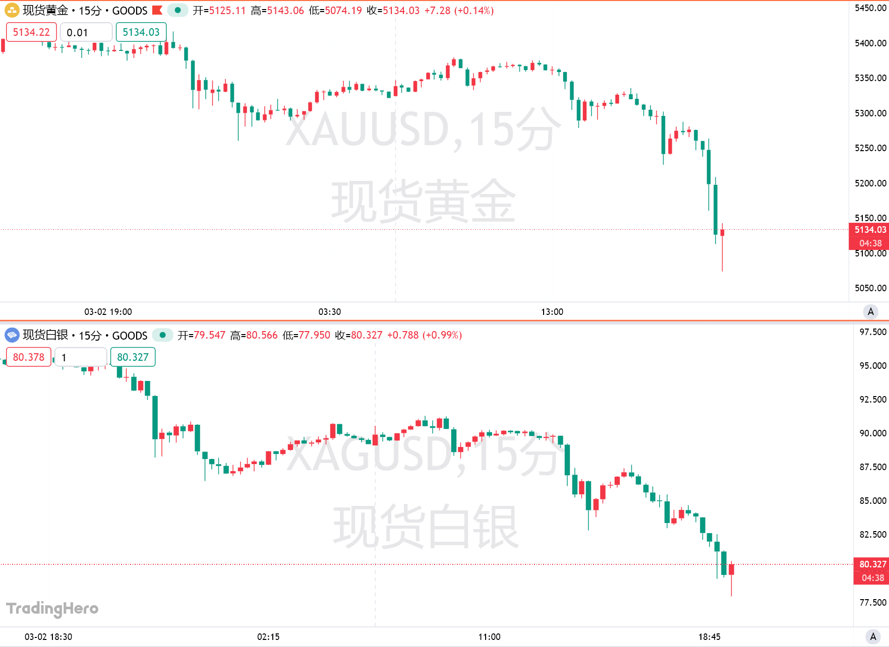 国际现货黄金跌跌不休,一度下破5100整数关口,跌幅扩大至超过4%,此前曾上涨1.1%。国际现货白银一度暴跌12%,最低触及77.95美元/盎司。
