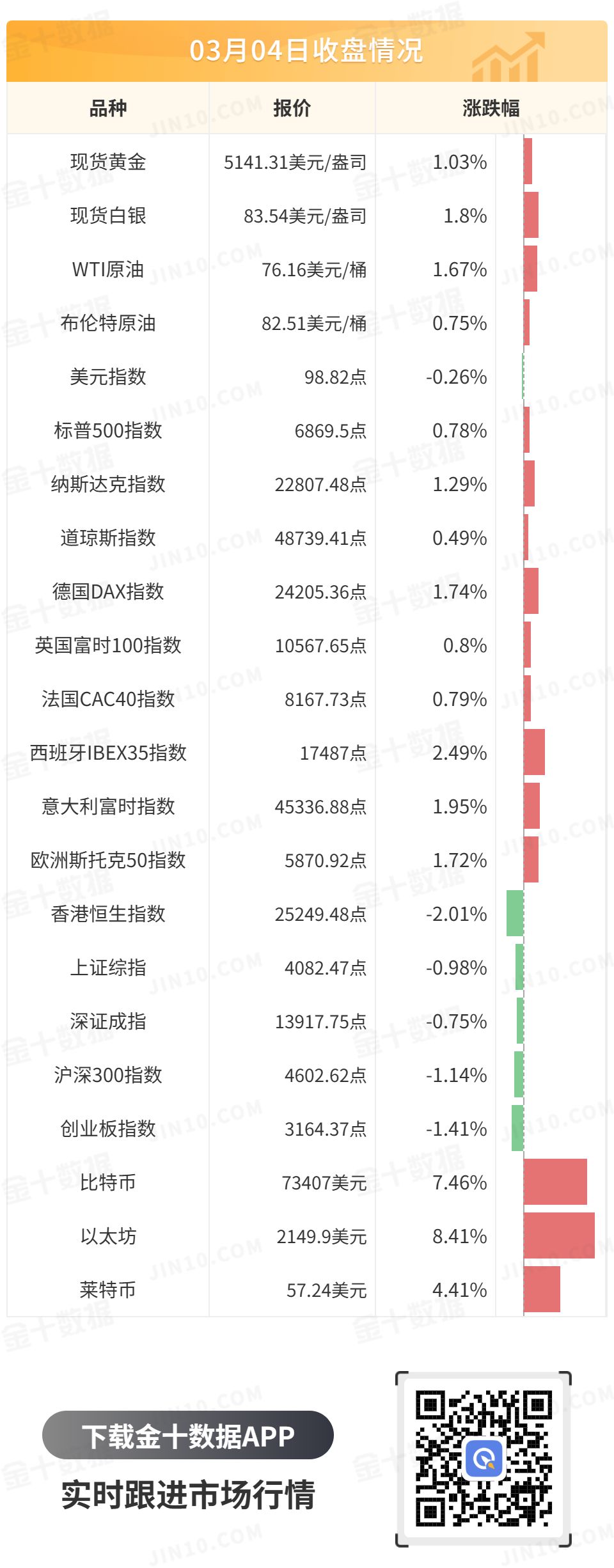 受美元指数走弱和迪拜航空货运中断影响,国际现货金银迎来日线反弹。现货黄金最终收涨1.03%,报5141.31美元/盎司;现货白银最终收涨1.8%,报83.54美元/盎司。