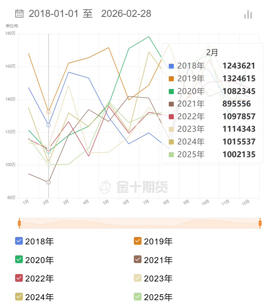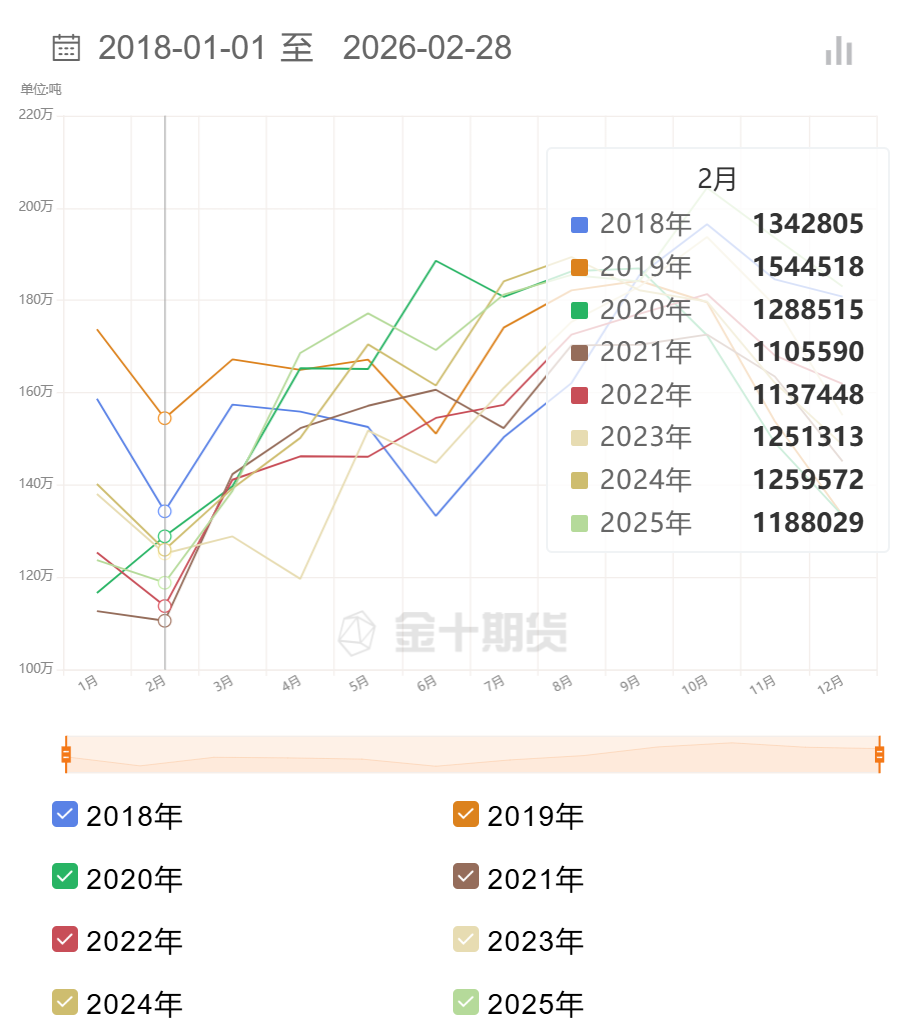 根据路透社对10名交易员、种植者及分析师的调查中值预测,期末库存预计为263万公吨,较1月环比减少6.52%,为去年11月以来的最低水平。