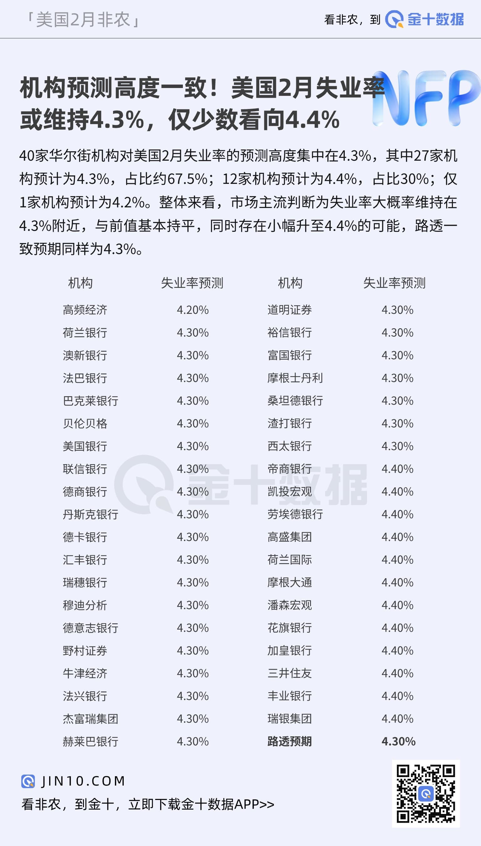 8小时前 机构预测高度一致!美国2月失业率或维持4.3%,仅少数看向4.4%
