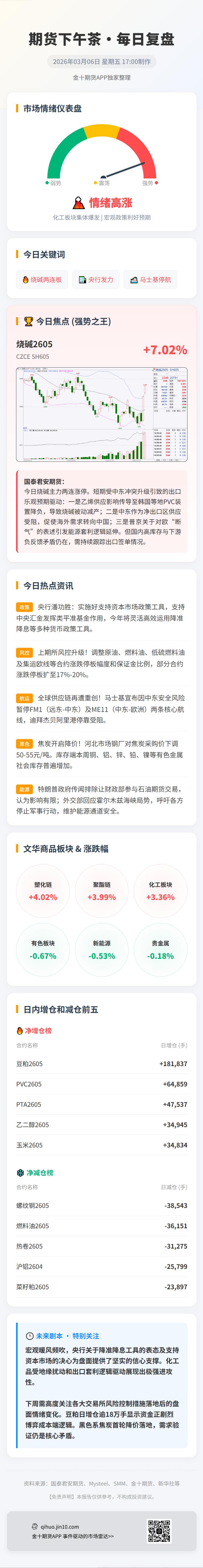 国泰君安期货表示,短期盘面受出口乐观预期影响。受中东地缘冲突升级影响,全球能源及化工市场情绪迅速升温,烧碱价格随之迎来一轮大幅上涨。市场的主要担忧集中于三点:一是乙烯供应的影响已传导至部分区域,如韩国等地PVC装置出现降负,进而通过氯碱平衡机制导致烧碱被动减产;二是中东作为烧碱净出口地区,其长协供应兑现受阻,促使部分海外需求转向中国,推动近期烧碱出口回暖。三是俄罗斯总统普京当地时间3月4日在接受俄媒采访时表示,未来考虑俄罗斯主动给欧洲“断气”,停止向欧洲市场供应并转向新兴市场。欧洲天然气供应的不确定性可能导致当地电价大幅波动,进而驱动中国烧碱出口扩张,其本质上是能源套利逻辑的延伸。但需注意的是,国内供需矛盾依然存在,高产量、高库存、主要下游氧化铝负反馈的矛盾尚未发生明显改善,后续需持续跟踪海外装置动态及中国出口签单情况。