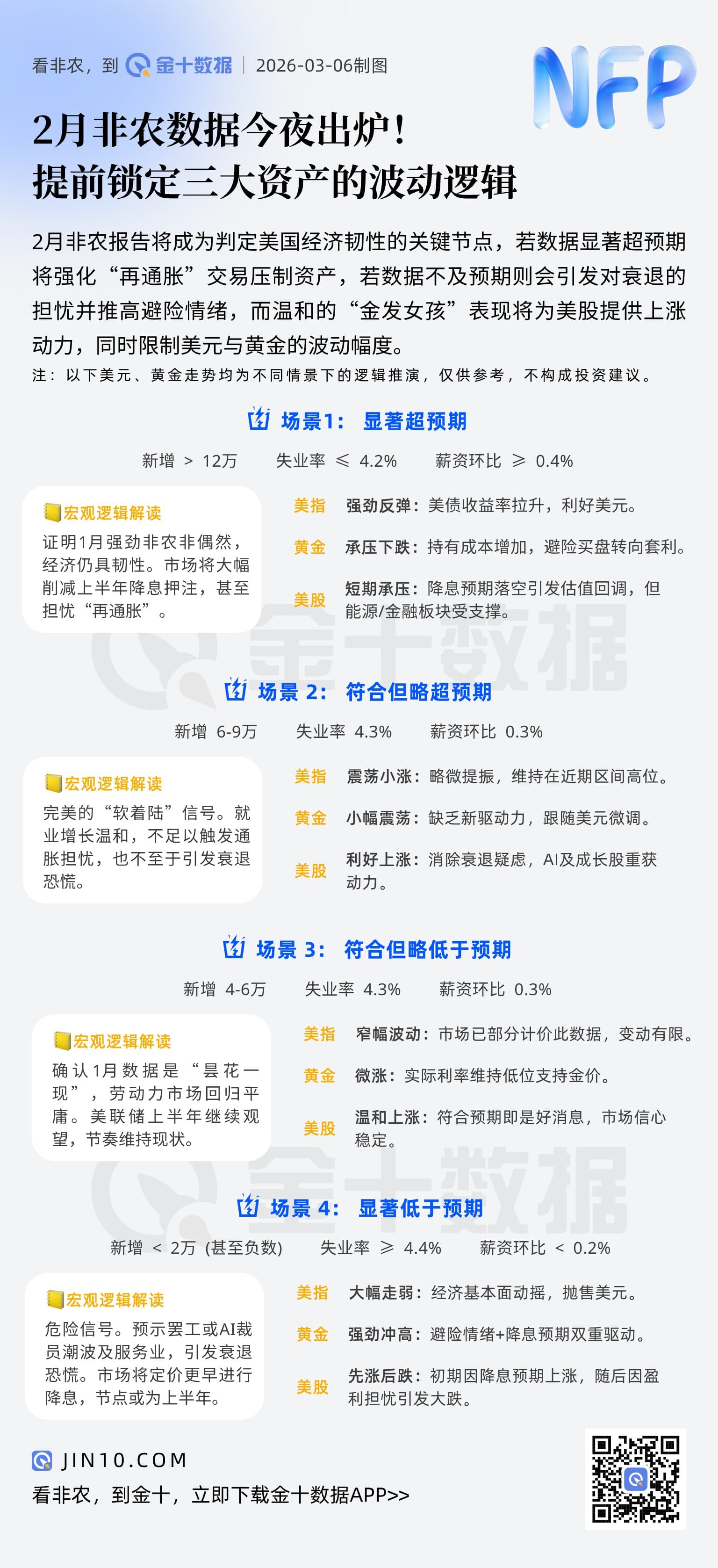 2月非农将成为判定美国经济韧性的关键节点。美元、黄金、美股在不同情景下将如何波动?一图看懂逻辑推演!