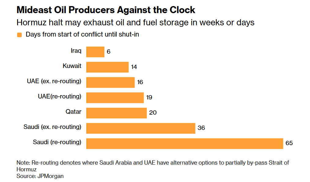 根据彭博新闻社汇编的数据,该国1月份石油日产量约为257万桶,其供应的唯一出口通道就是霍尔木兹海峡。该地区最大产油国沙特已将部分原油从这条路线转移至红海的延布。