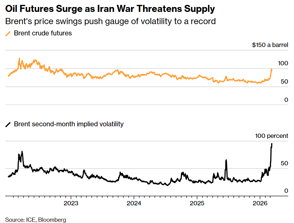 随着海湾产油国锁定石油产量、霍尔木兹海峡的海上交通近乎停滞,且看不到任何解决的迹象,布伦特原油合约在交易的头几个小时内成交量巨大,飙升至每桶近120美元的峰值,触及2022年年中以来的高点。随后,市场情绪突然转变——迫使交易员们做出戏剧性的转向。