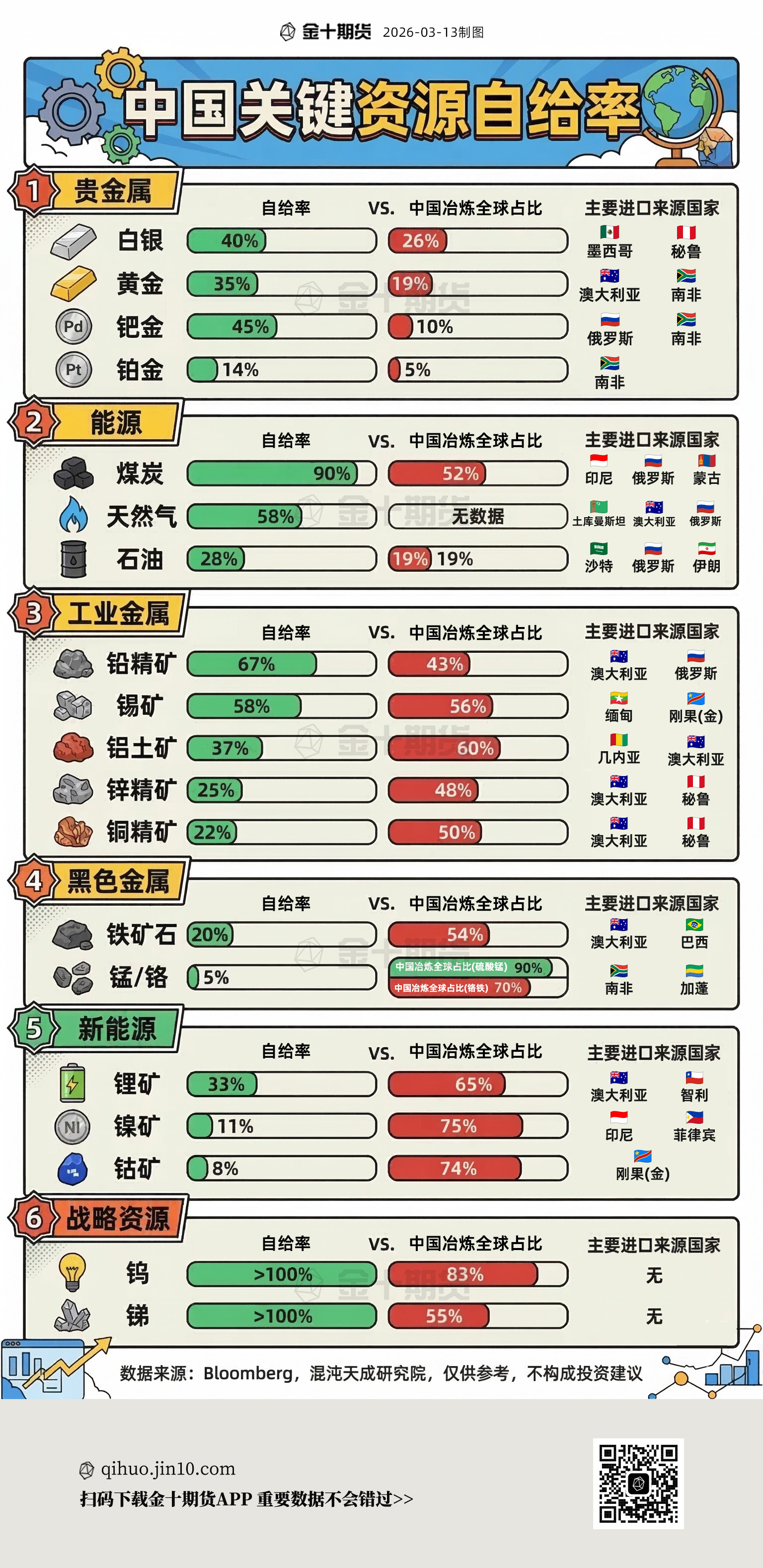 2小时前 中国关键资源的“外部依赖症”有多严重? | 金十期货热图