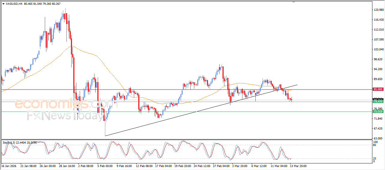 然而,由于价格仍处于EMA50下方交易,负面压力依然存在。EMA50作为动态阻力,限制了现货白银短期内完全反弹的可能性。此外,短期内多头修正趋势线的跌破也加剧了这一影响。