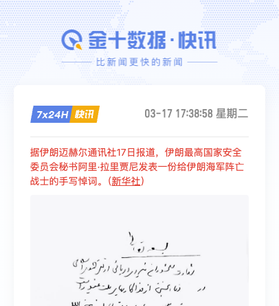 报道称,以军评估认为已成功“暗杀”。但随后伊朗迈赫尔通讯社17日报道,伊朗最高国家安全委员会秘书阿里·拉里贾尼发表一份给伊朗海军阵亡战士的手写悼词。