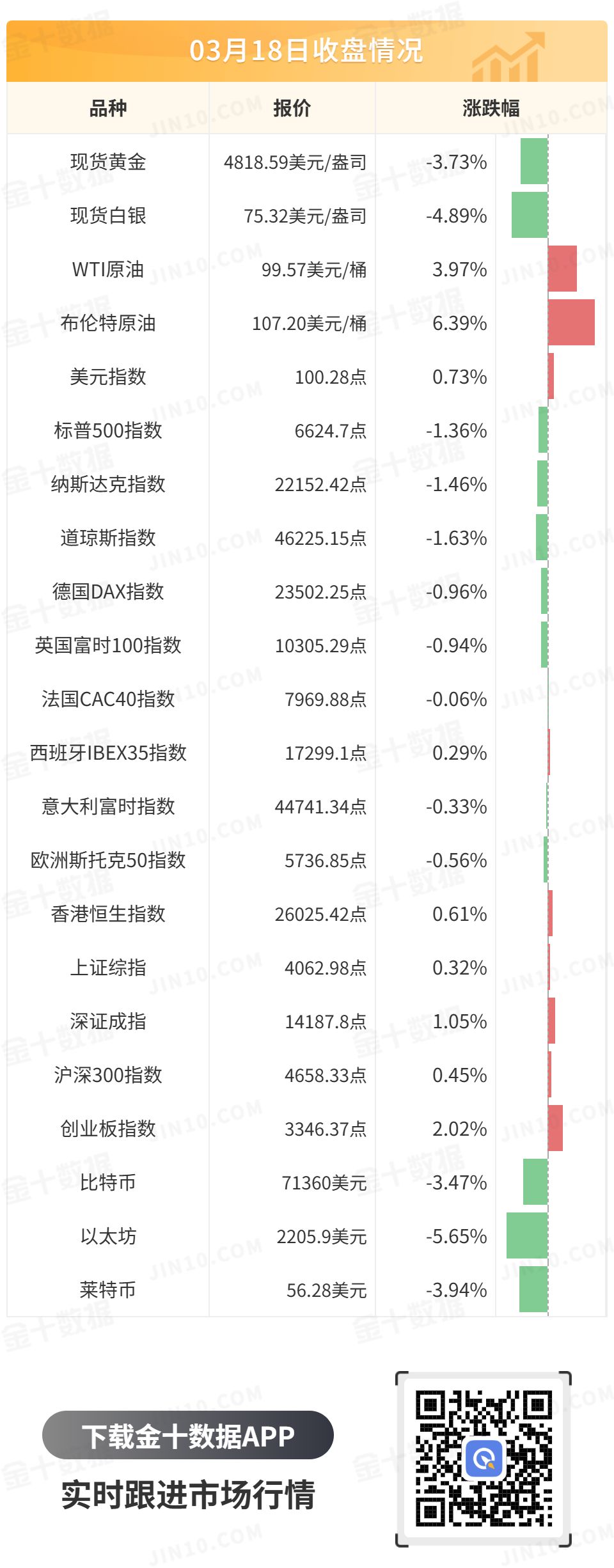 因伊朗革命卫队威胁将袭击中东地区的多个能源设施,原油大幅上涨。WTI原油在欧盘时段大幅上涨,并在美盘时段冲上100美元大关,但未能站稳此处,最终收涨3.97%,报99.57美元/桶;布伦特原油稳站在100美元上方,最终收涨6.39%,报107.20美元/桶。
