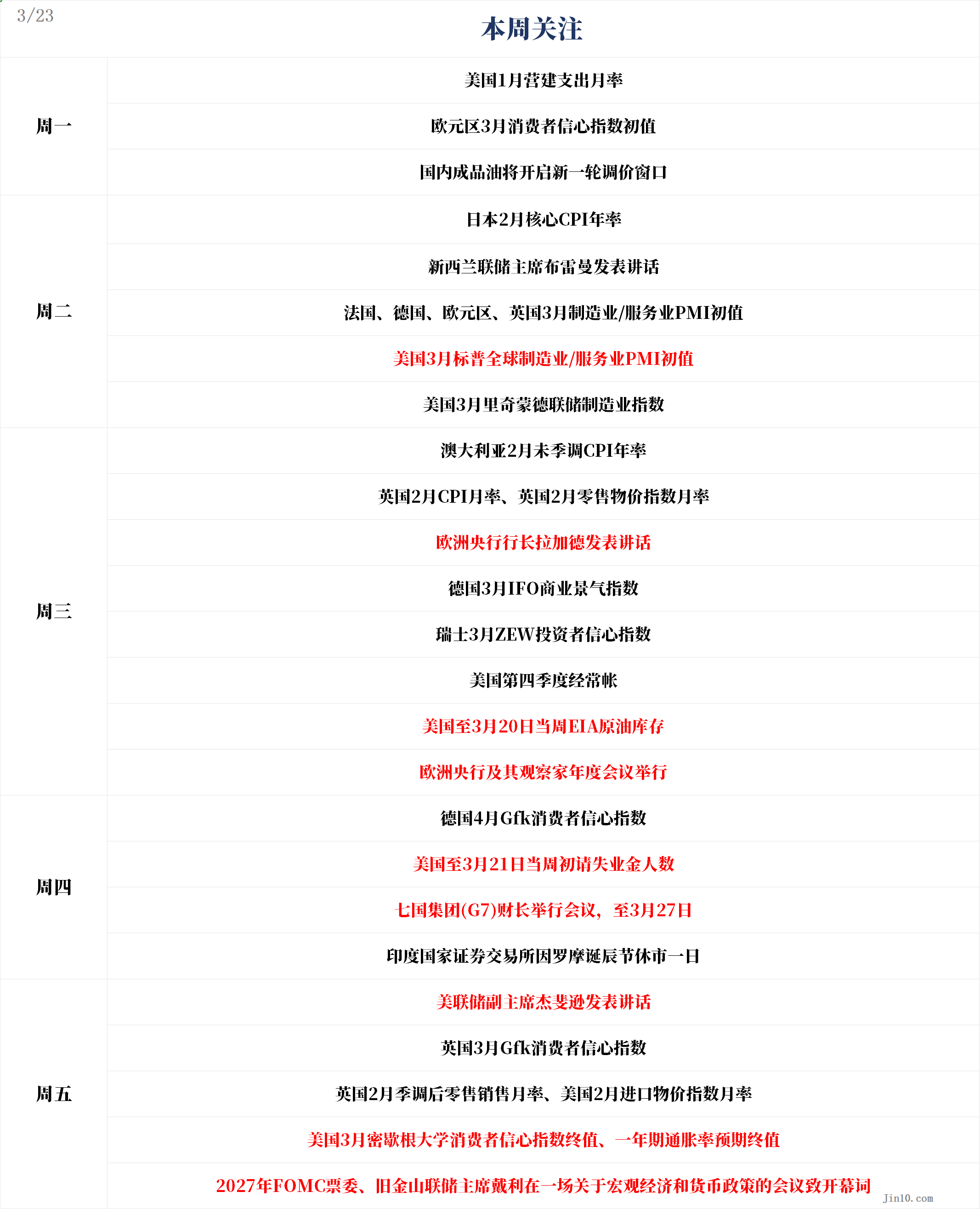 周四待定,七国集团(G7)财长举行会议,至3月27日;