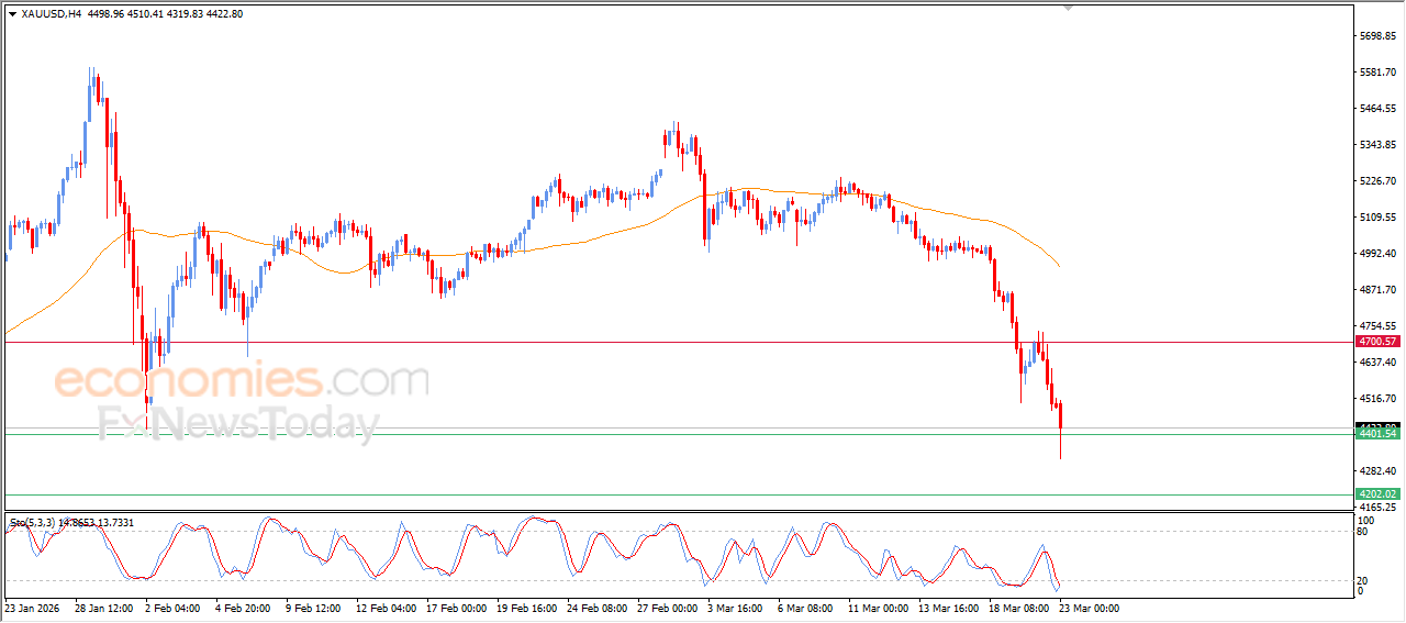 Economies.com的分析师今日最新观点:现货黄金在最新的日内交易中持续大幅下挫,跌至4400美元的关键支撑位,短期内空头修正趋势占据主导地位。同时,价格运行在EMA50均线下方,带来负面压力,进一步强化了空头趋势的主导地位。另一方面,我们注意到在相对强弱指标(RSI)深度超卖后,出现了初步的正向交叉,这可能在接下来的时期内为部分修正性反弹提供支撑,尤其是在当前支撑位能够守住的情况下,有望收复部分前期跌幅。