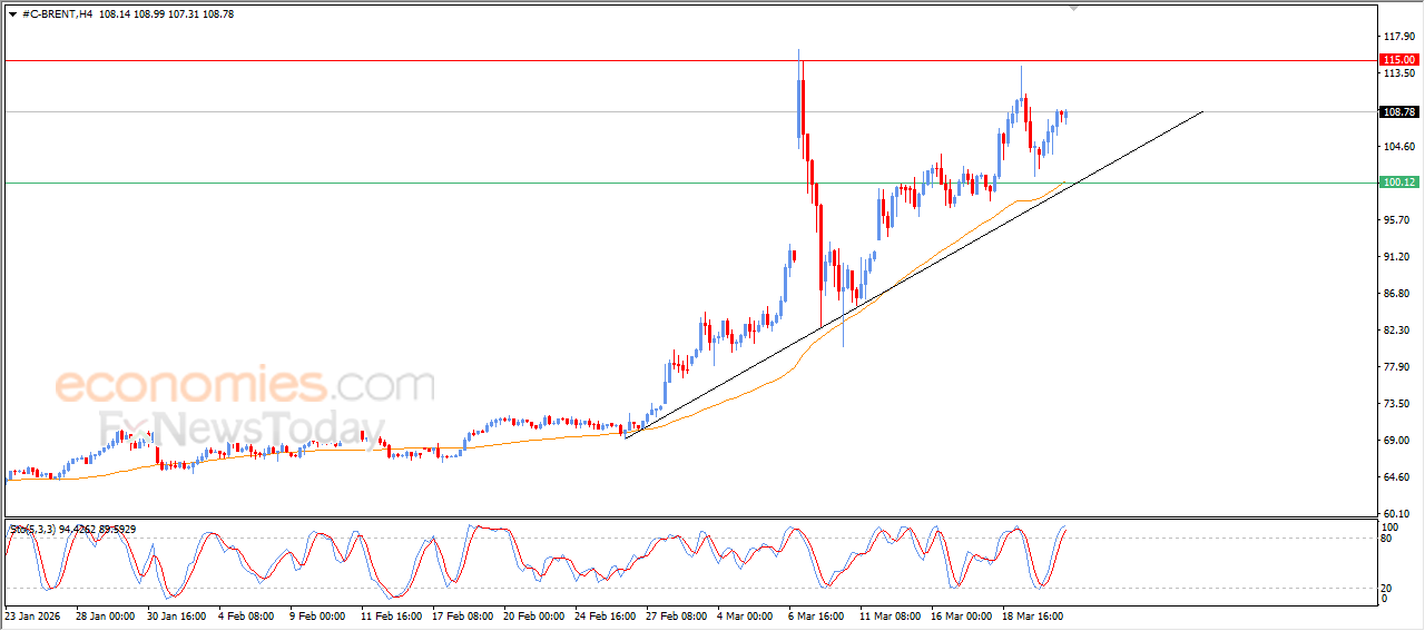 Economies.com的分析师今日最新观点: 布伦特原油期货在最新的日内交易中连续上涨,受益于其持续运行在EMA50均线之上所带来的积极支撑,这进一步巩固了短期内主要多头趋势的稳定性和主导地位,尤其是在其沿着该趋势支撑线交易的情况下。另一方面,我们注意到相对强弱指标上出现了负面叠加信号,在触及超买水平后,削弱了近期的涨幅。由于需要消化部分超买状态,预计后市可能会出现一定的波动整理。