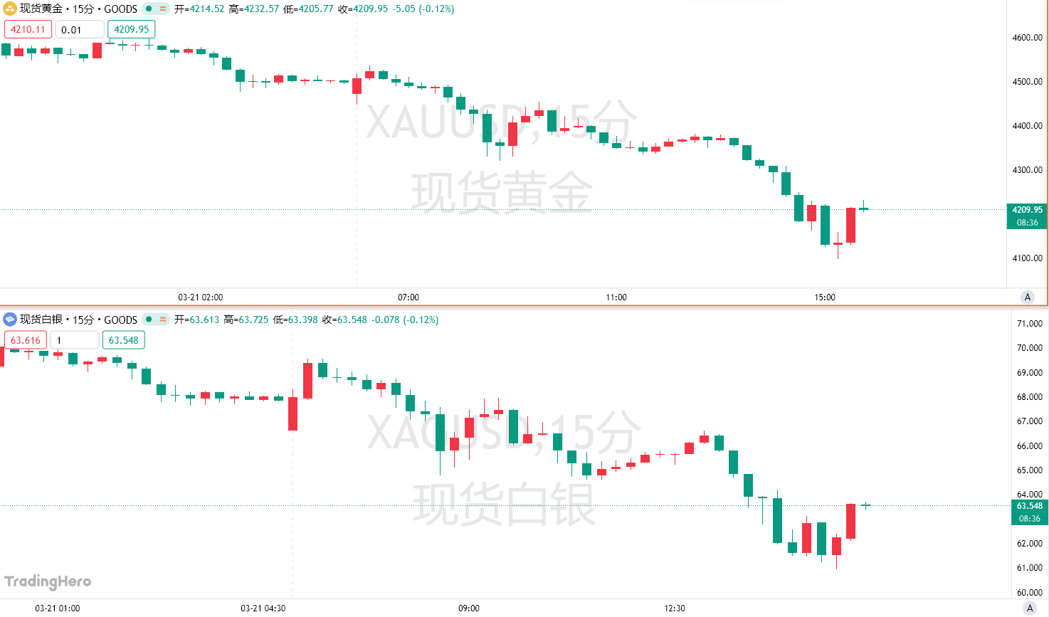周一欧盘,现货黄金一度下破4100美元大关;现货白银一度大跌超10%,截止发稿前,二者均较日内低点有所反弹。