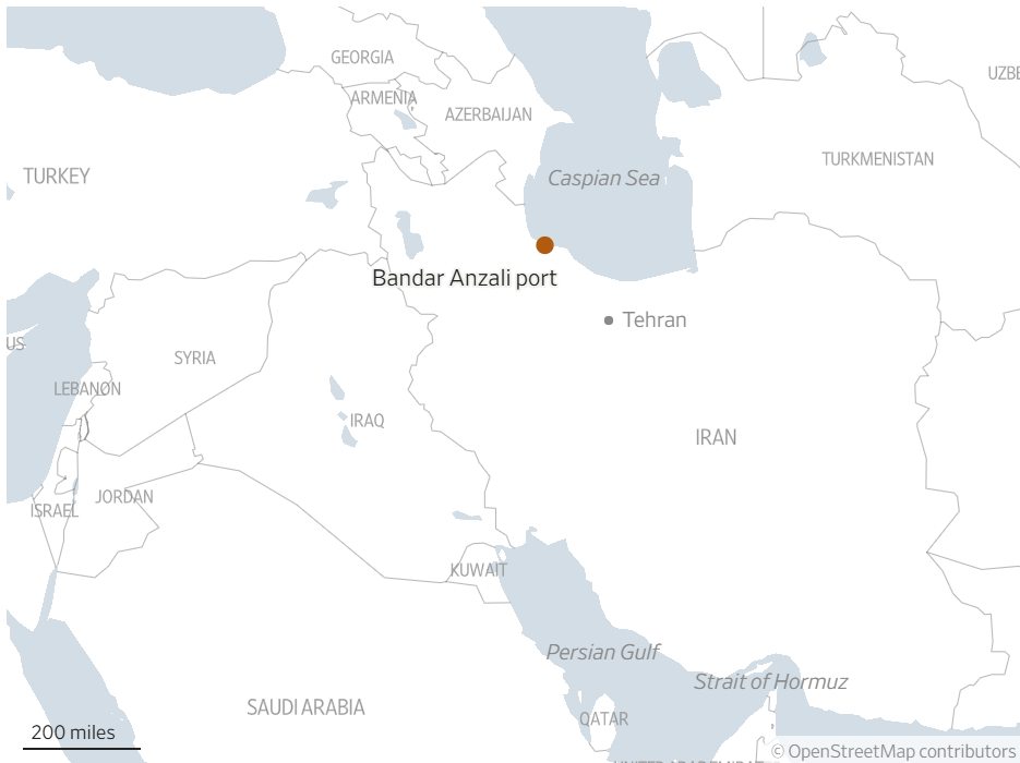 巴黎政治学院专攻伊朗与俄罗斯研究的教授妮可·格拉耶夫斯基(Nicole Grajewski)表示,安扎利港一直是伊朗无人机的主要运输通道。军事行动区与该港口的民用区域相邻,她说,伊朗伊斯兰共和国航运公司(Islamic Republic of Iran Shipping Lines)——一家受到美国等国制裁的公司——经常出入该区域。