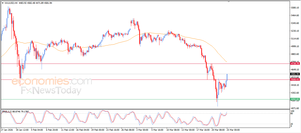 Economies.com的分析师今日最新观点:现货黄金价格在近期盘中交易中突破关键阻力位4500后,进一步巩固了涨势,显示出短期内修正性看涨动能的持续。此次上涨得到了相对强弱指标(RSI)所释放的积极信号的支撑,尽管该指标已进入超买区间,这可能导致价格出现一定的盘整或横盘,以缓解超买状态。另一方面,现货黄金价格仍受到位于EMA50下方交易所带来的负面压力影响,这可能威胁到涨势的持续,并增加未来一段时间内价格反转或横盘整理的可能性。