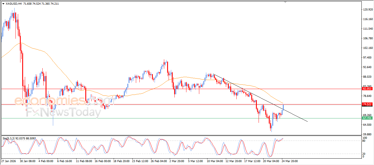 Economies.com的分析师今日最新观点:现货白银价格在近期的日内交易中实现了强劲上涨,受益于相对强弱指标所释放的积极信号,这增强了多头动能。此外,现货白银还突破了短期内的小型下行趋势线,这一技术信号积极,反映出其有意延续修正性涨势。目前,价格正面临EMA50均线的阻力,正尝试克服这一负面压力。如果能够成功突破,未来一段时间内有望打开上行空间,挑战新的阻力位。