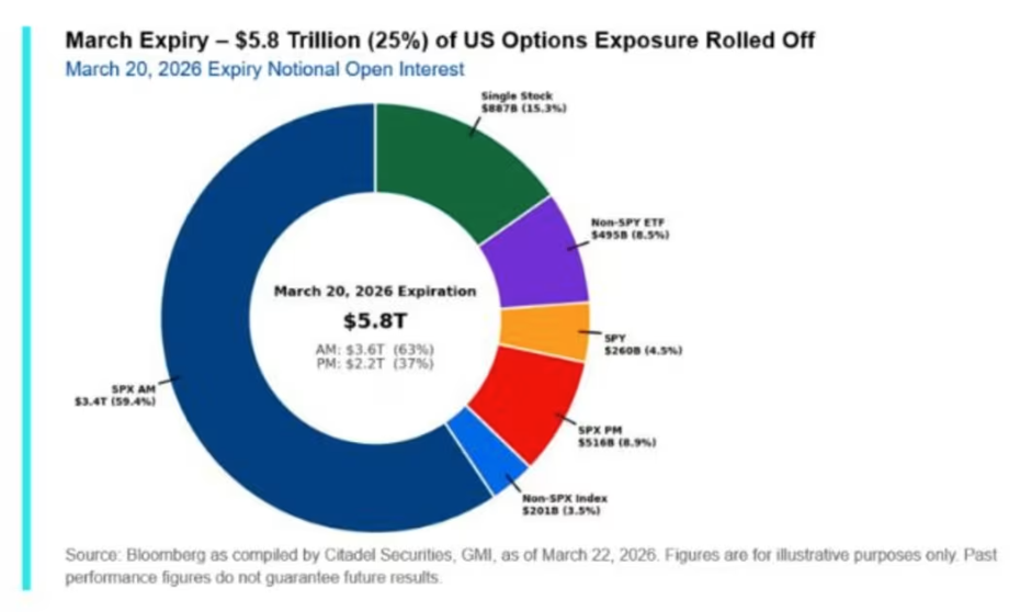 他表示,资金流向技术面在多空方向上“均出现流动性洼地”,一大关键出清事件将助推上涨:占美股期权敞口25%的机械性卖单,已于3月20日前到期离场。