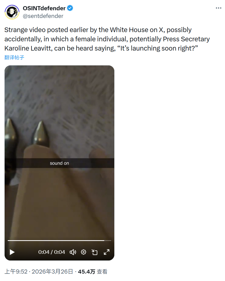 白宫两条神秘视频引爆舆论猜测,其中一条视频出现女声提问“很快就要发射了,对吧?”,随后该视频被删......