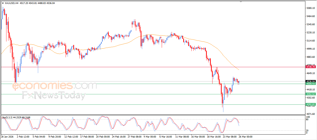 Economies.com的分析师今日最新观点:现货黄金在最新的日内交易中录得小幅上涨,受益于价格维持在4500支撑位上方,这一支撑为其反弹提供了积极动能。当前表现出短期内小幅看涨的走势主导市场节奏,此前价格成功缓解了相对强弱指标上的超买状况,为其在短期内冲击新的阻力位留出了更多空间。尽管如此,现货黄金价格仍面临一定的下行压力,原因在于其仍处于EMA50均线下方运行,这可能限制其持续上行的能力,并在接下来的阶段阻碍其进一步的反弹进程。