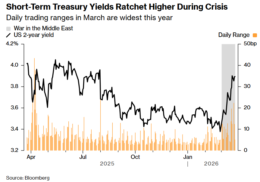 自冲突开始以来,两年期美国国债收益率已上涨约50个基点至3.87%,但摩根士丹利表示,其分析显示,抛售“因头寸平仓和流动性状况恶化而加剧”。