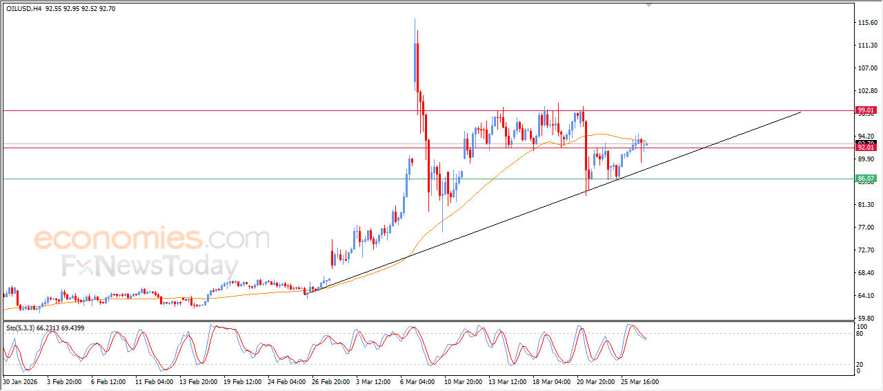 Economies.com的分析师今日最新观点:WTI原油期货在EMA50附近遭遇阻力,日内波动剧烈,该均线阻碍了价格的进一步上涨。目前,油价已有所回落,试图重拾上涨动能以克服阻力,同时也在努力缓解相对强弱指标(RSI)的超买状况,因为RSI已开始出现负面信号。尽管面临这些压力,但主要的短期趋势仍然是看涨的,而且沿着一条支撑性的上升趋势线运行,这使得未来一段时间内再次上涨的可能性依然存在。