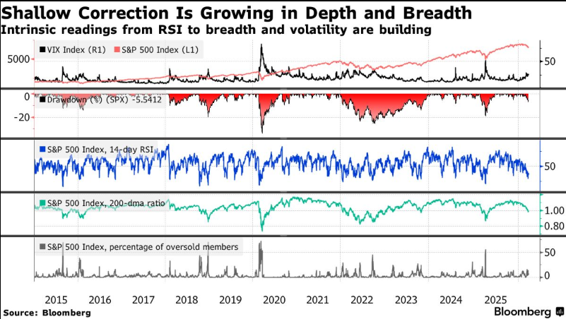 上周初,市场对中东冲突的反应看起来还只是一次温和的回调,但如今股市已经被推到了技术性超卖的边缘。纳斯达克100指数已从高点暴跌超过10%,正式步入回调区间,而标普500指数也即将步其后尘。欧洲斯托克600指数在3月份大跌近9%,正走向六年来表现最差的一个月。