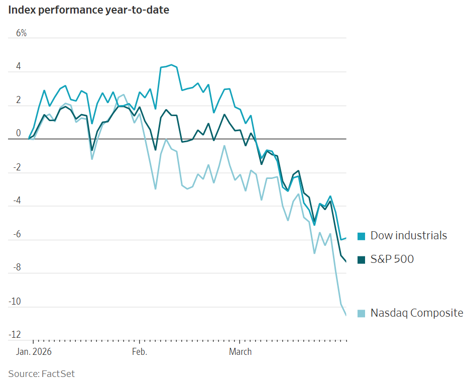 战争初期,股市的跌幅相对温和,反映出市场普遍预期霍尔木兹海峡的石油出口中断不会持续太久。但随着冲突进入第二个月,华尔街不得不面对更加阴暗的局面。