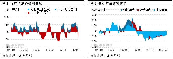 3月初因钢厂高炉铁水下滑明显,钢铁需求偏弱,焦炭供应过剩矛盾凸显,且焦煤价格偏弱,焦炭价格下调一轮,降幅50-55元/吨。本月因钢厂供应减量,钢材价格偏强运行,中旬后焦炭价格止跌企稳,焦煤、钢材价格整体共振偏强上涨,钢厂盈利有所修复。截至3月26日,卓创资讯监测的河北唐山钢坯盈利-1元/吨,较2月末减亏32元/吨,本月平均盈利-7.53元/吨,较上月减亏40.12元/吨。另外3月份河北地区热卷盈利-75.45元/吨,较上月减亏33.04元/吨。整体看3月份钢厂盈利情况有所修复,但利润率仍然不高,盈利维持偏低水平。